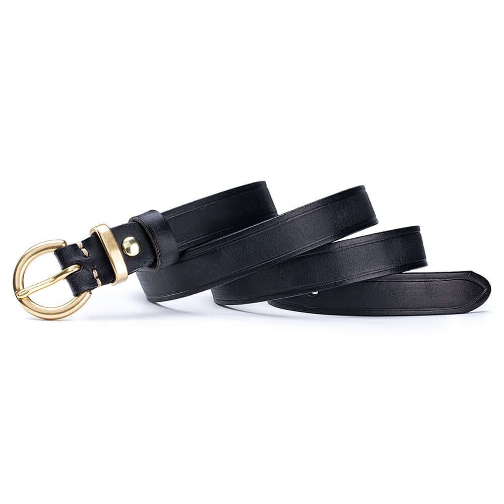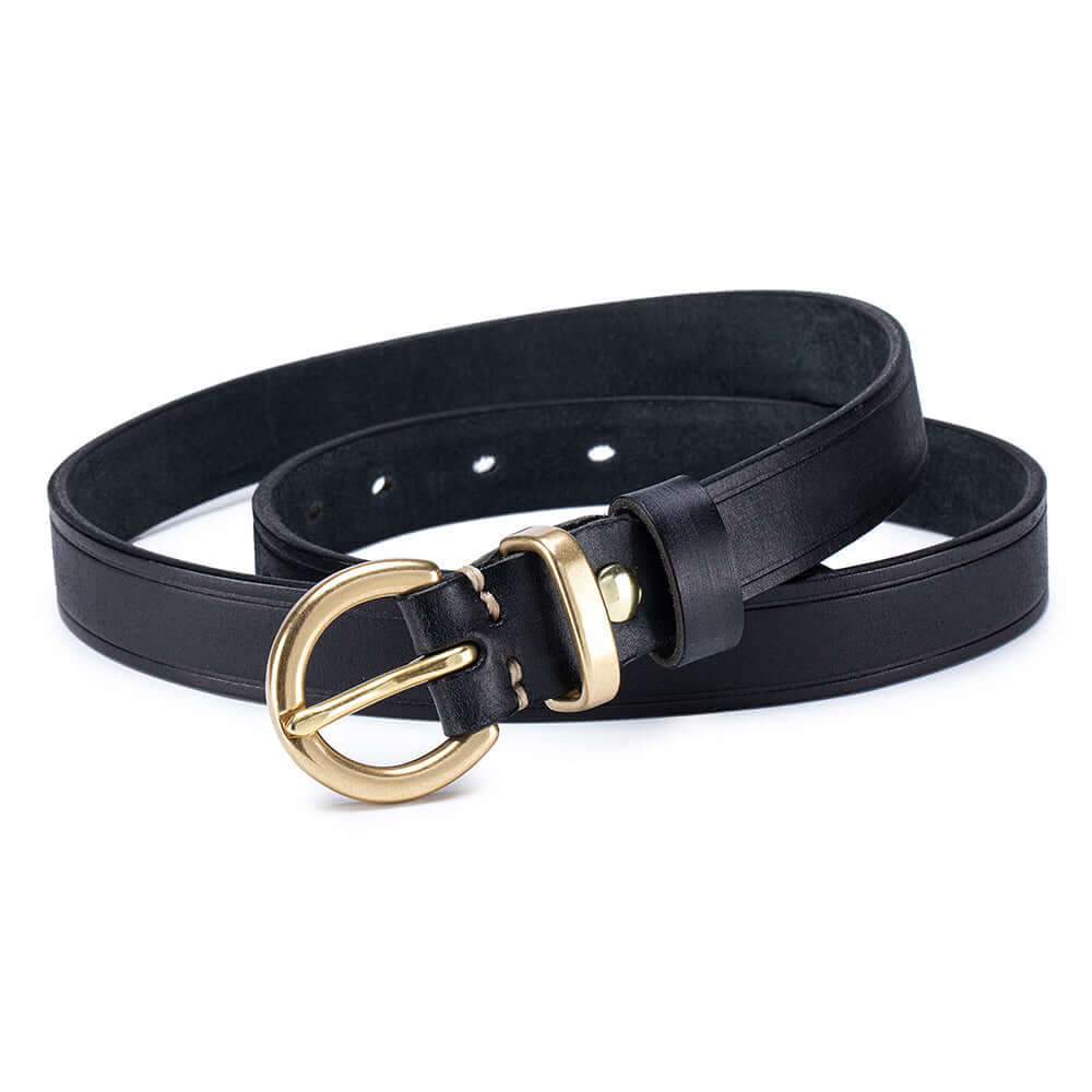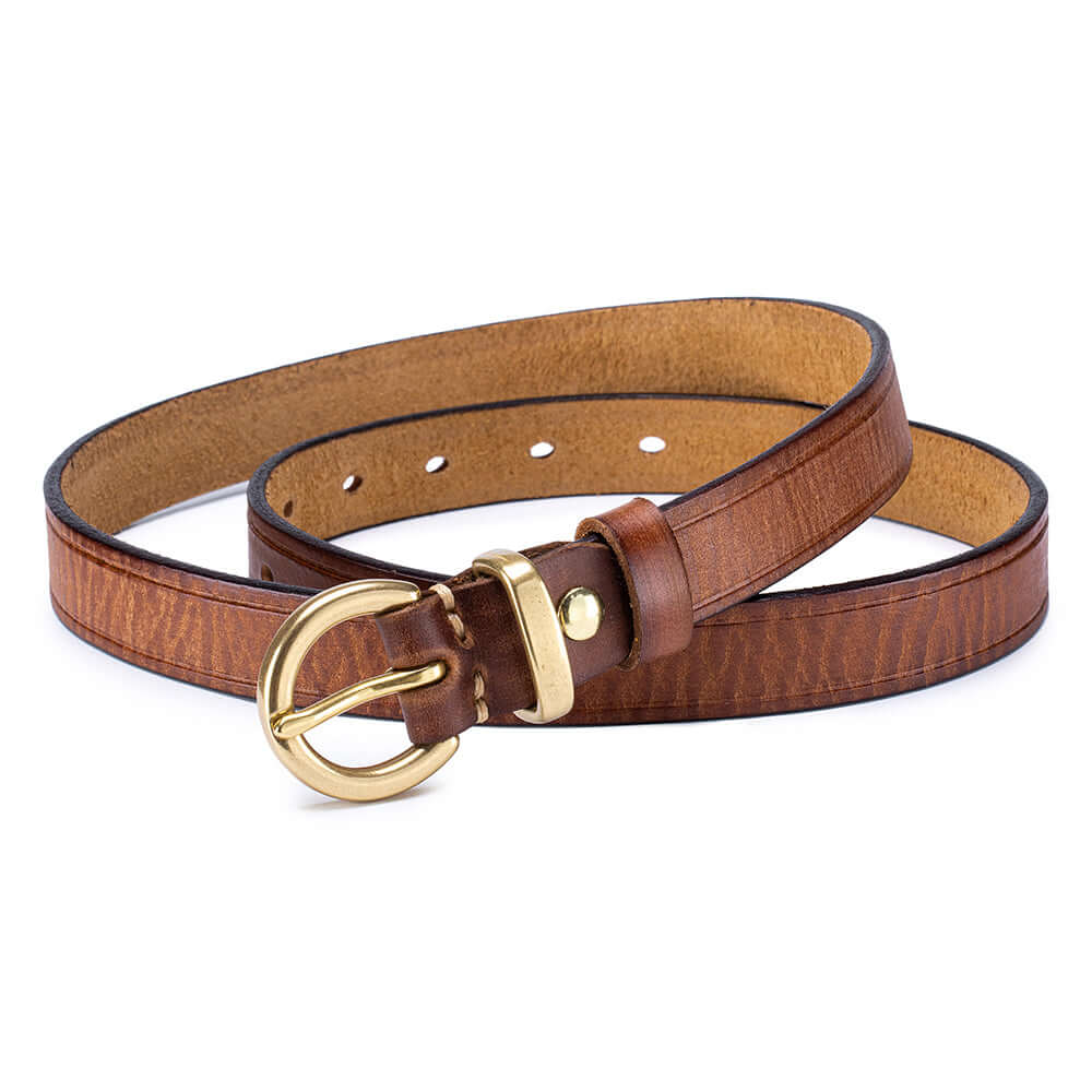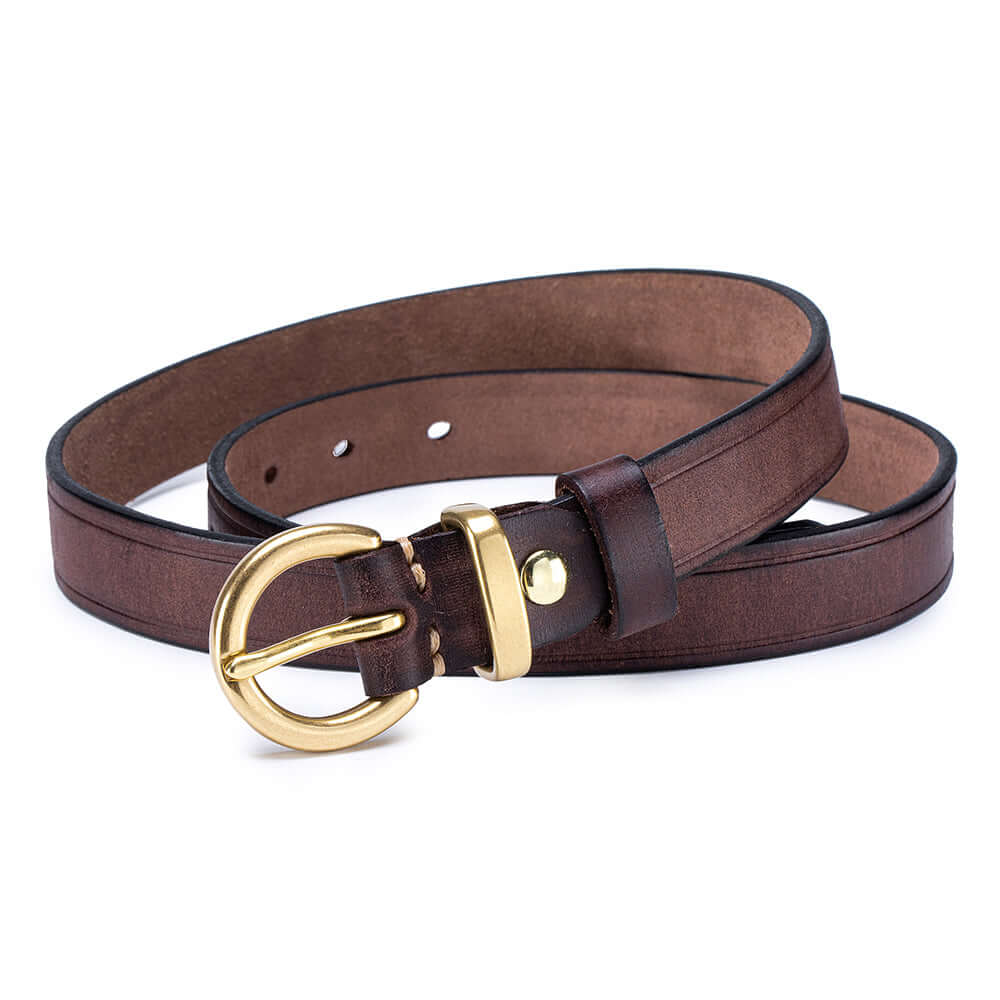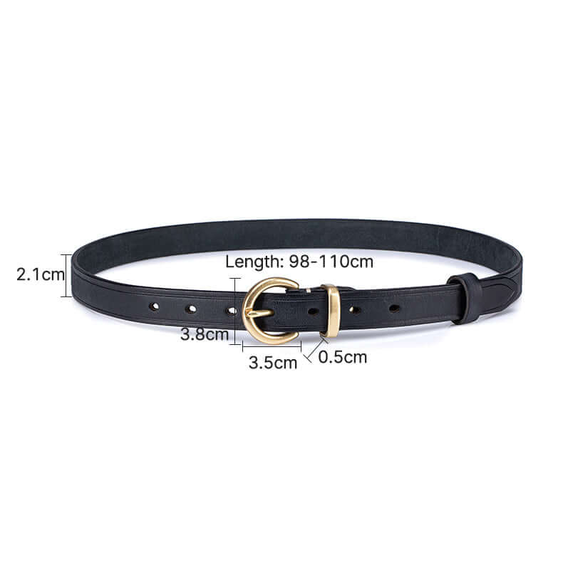 Crafted from premium vegetable-tanned full-grain leather, this women’s genuine leather belt features a timeless antique gold buckle and classic pin-hole design. Durable, stylish and easy to adjust, it’s the perfect everyday belt for jeans, dresses or trousers.