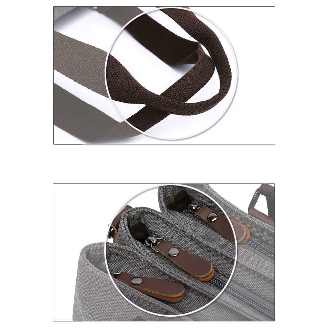 Canvas Shoulder Tote Bag | Three Zippered Main Compartments