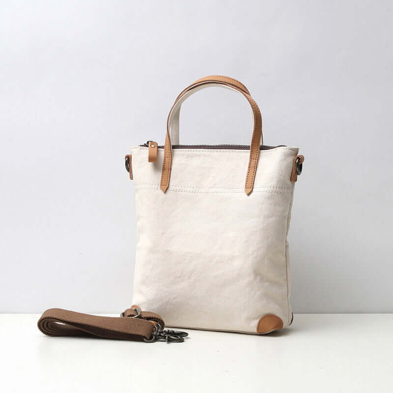 This elegant canvas handbag blends simplicity with practical everyday style. Made from durable washed canvas and accented with genuine leather handles, it offers a natural texture and timeless charm. The detachable adjustable strap allows you to switch easily between handbag, shoulder, and crossbody wear, making it perfect for work, errands, or weekend outings.