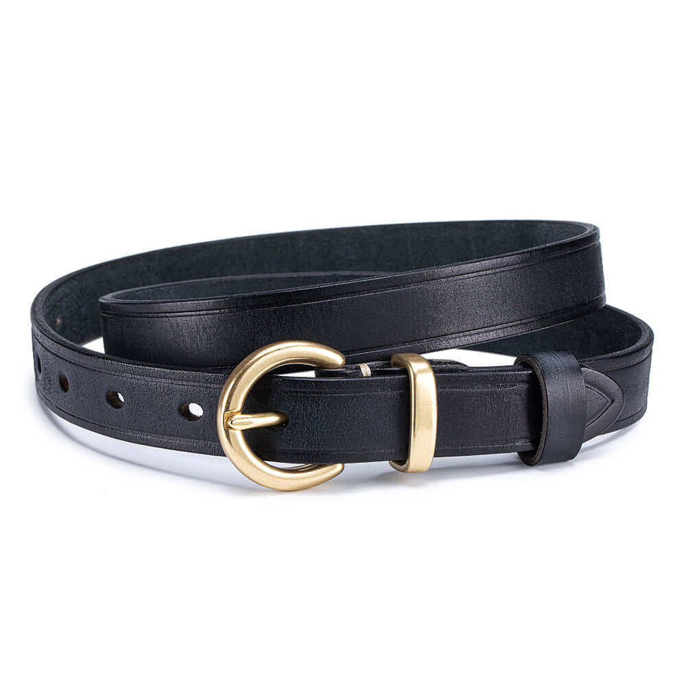 Crafted from premium vegetable-tanned full-grain leather, this women’s genuine leather belt features a timeless antique gold buckle and classic pin-hole design. Durable, stylish and easy to adjust, it’s the perfect everyday belt for jeans, dresses or trousers.