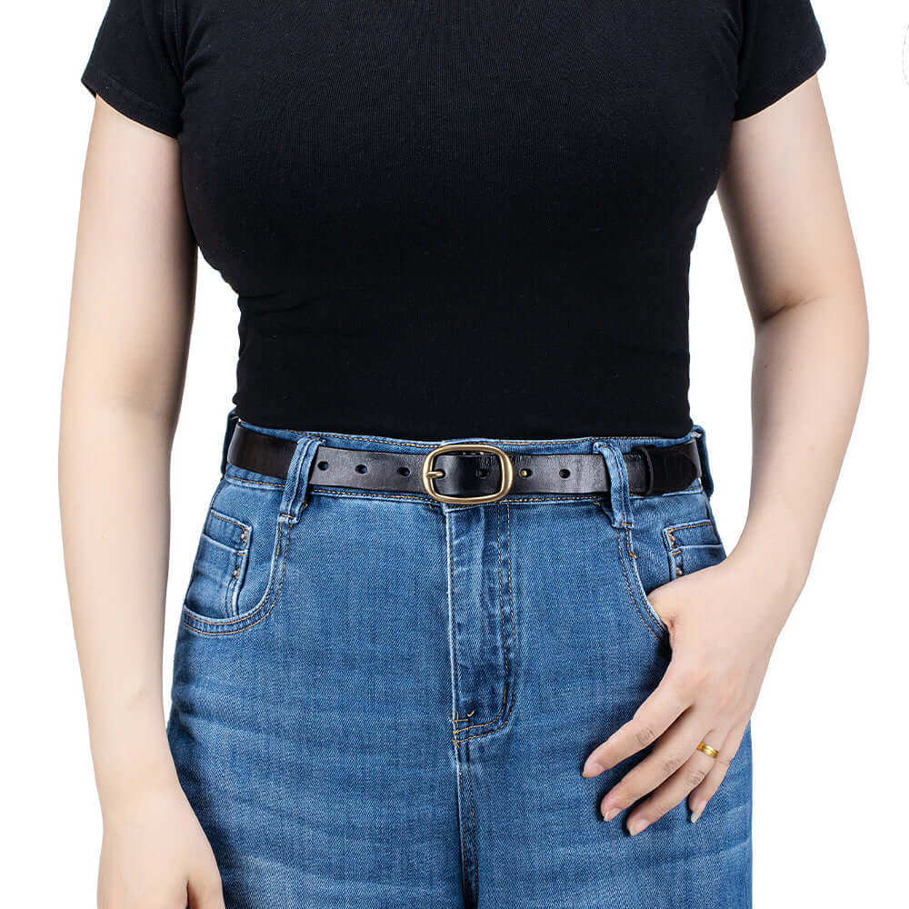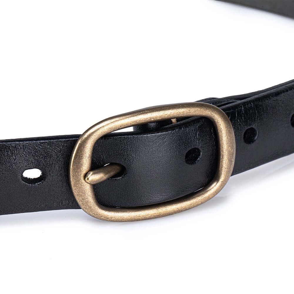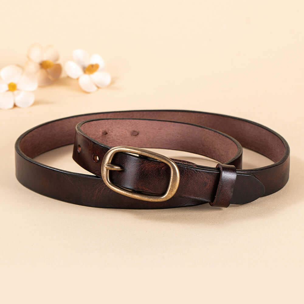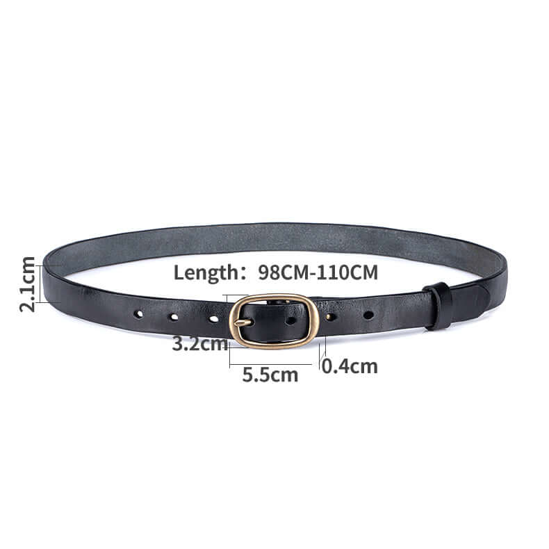 Crafted from premium vegetable-tanned genuine leather, this vintage-style women’s belt features a classic solid brass buckle and a slim elegant profile. Durable yet soft, it’s designed for everyday wear and can be easily adjusted for the perfect fit, making it a timeless accessory for jeans, dresses, or work outfits.