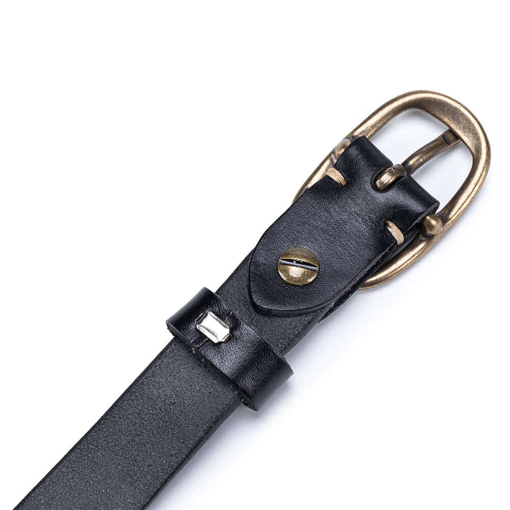 Vintage Leather Belt – Genuine Leather Brass Buckle